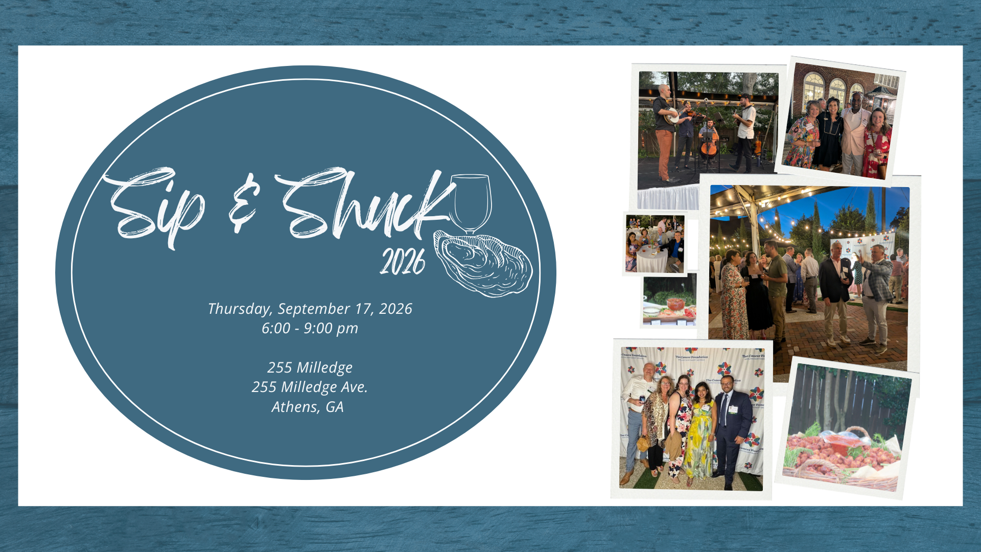 As we celebrate the 5th year of Sip ’N Shuck, we invite you to save the date and plan to join us for this special evening.